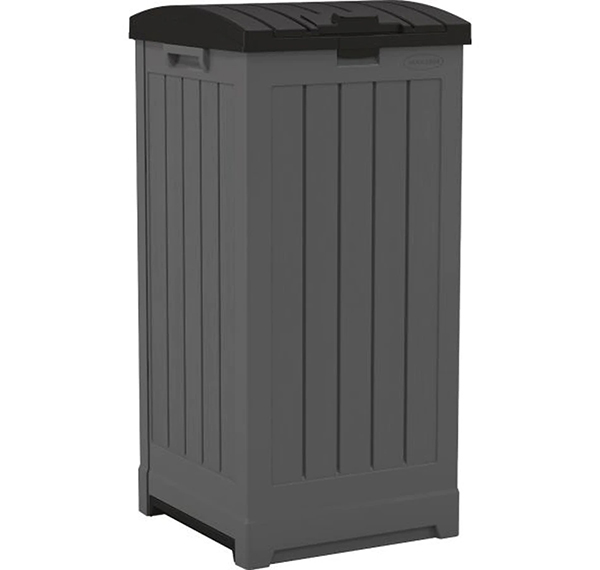 This Suncast® 39 Gallon Trash Hideaway® has a modern stylish design that looks great on any patio or deck and will help keep your yard clean all year long. This unit uses standard 39 gallon trash bags and features a trash bag roll holder, double latching lid and pullout tray for easy cleaning. Durable all-weather resin construction is easy to clean and maintain, while the solid bottom panel enhances product stability.