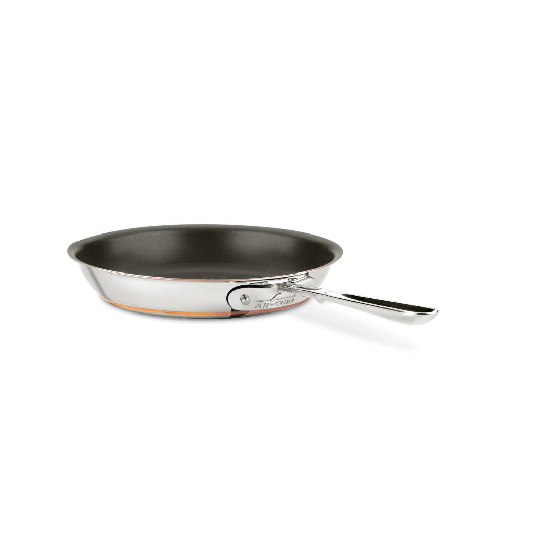 The premier All-Clad collection, Copper Core, is the undisputed choice for expert home and professional chefs. Featuring the revolutionary five-ply construction with a copper core, this collection is the ultimate combination of performance and luxury. This fry pan features a thick copper core, 2 layers of aluminum, and 2 layers of stainless steel. This unique construction makes it ultra-responsive to heat, disperses heat evenly, and creates unmatched, long-lasting durability. At 10″ in size, it’ll come in handy when you need to cook a quick breakfast in the morning or delicious dinner for two in the evening. For an added touch of elegance, it has a polished surface with a starburst finish and a cutout that shows off that lustrous copper. Like all our bonded cookware, it’s handmade in the USA at our Canonsburg, PA factory with ultra-durable materials that’ll last a lifetime and never go out of style.