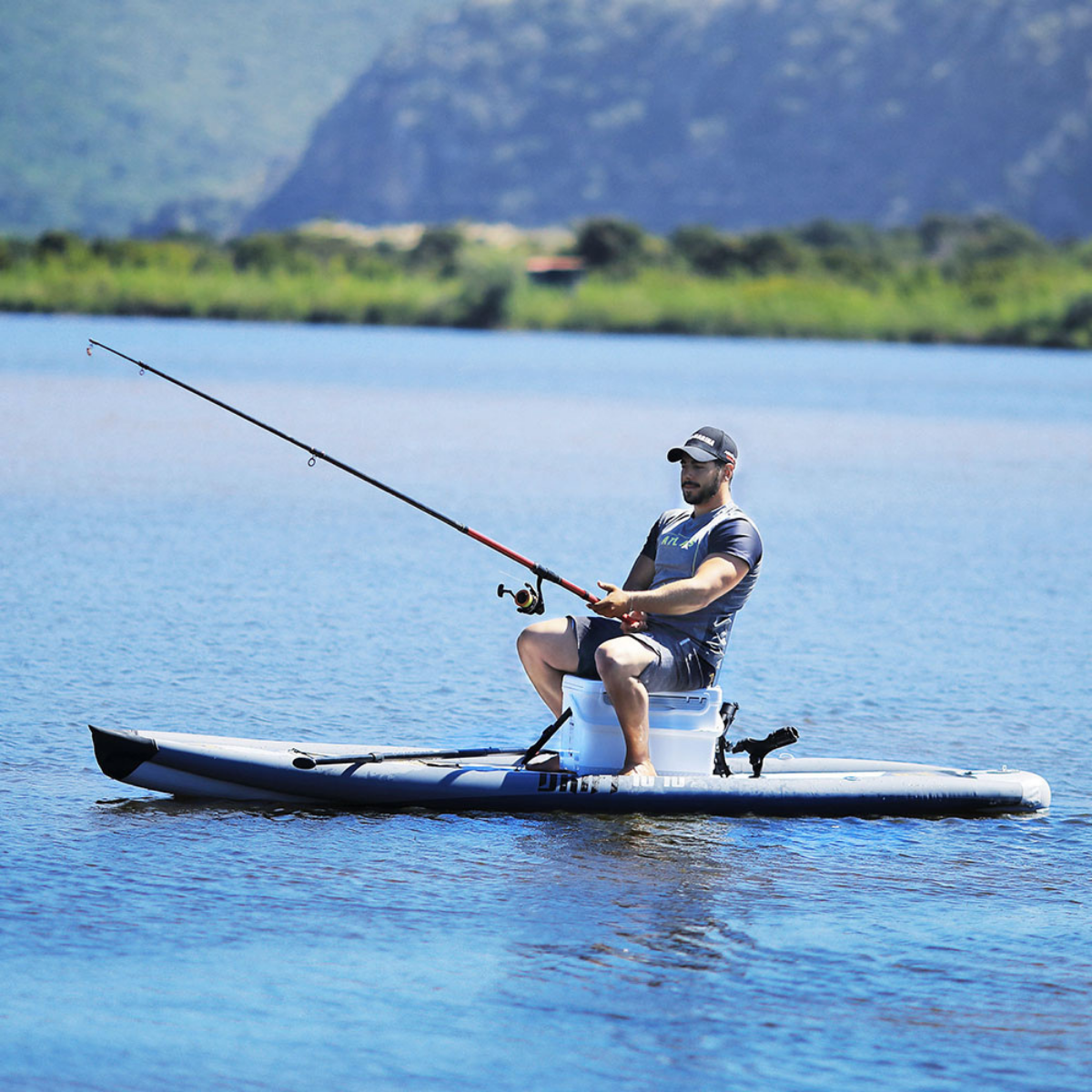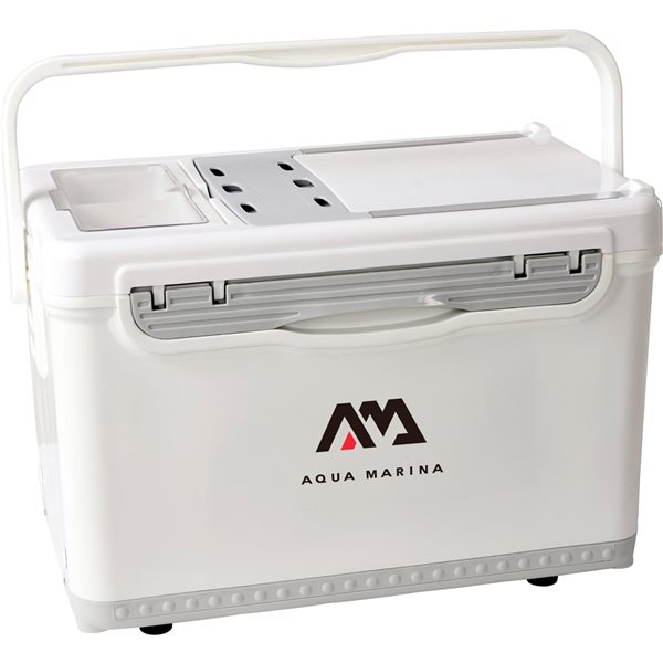 The Aqua Marina 2-IN-1 iSUP Fishing Cooler with high back support. Made of extra-thick insulation keeping fish or ice frozen for up to 8 hours. Equipped with high back support, foam cushion seat, bait and string trays and with a carries a handle plus a strap for better portability.