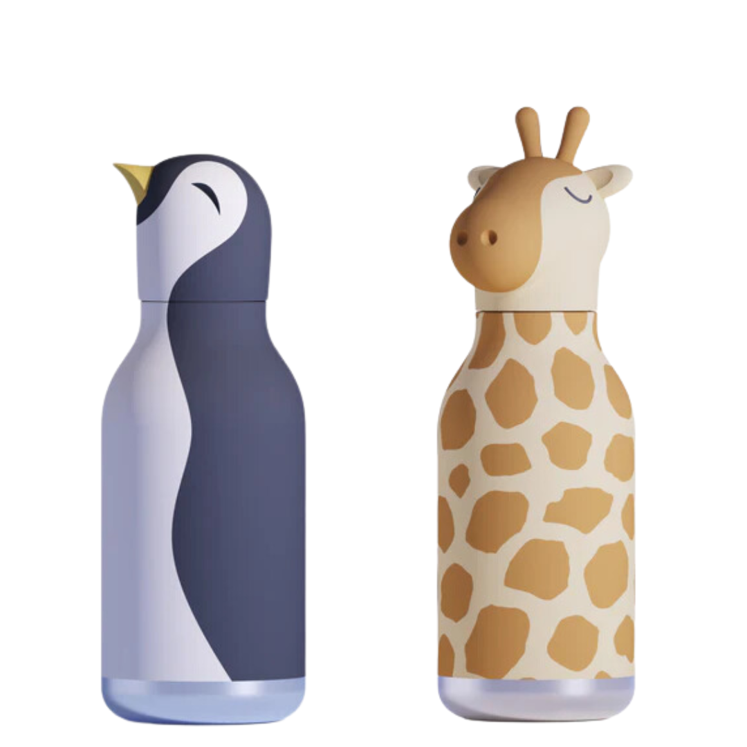 Asobu Bestie Bottle Penguin and Giraffe. Your BFF for walks, sports, traveling, camping, runs, rallies, raves, and the rest of your adventures together!