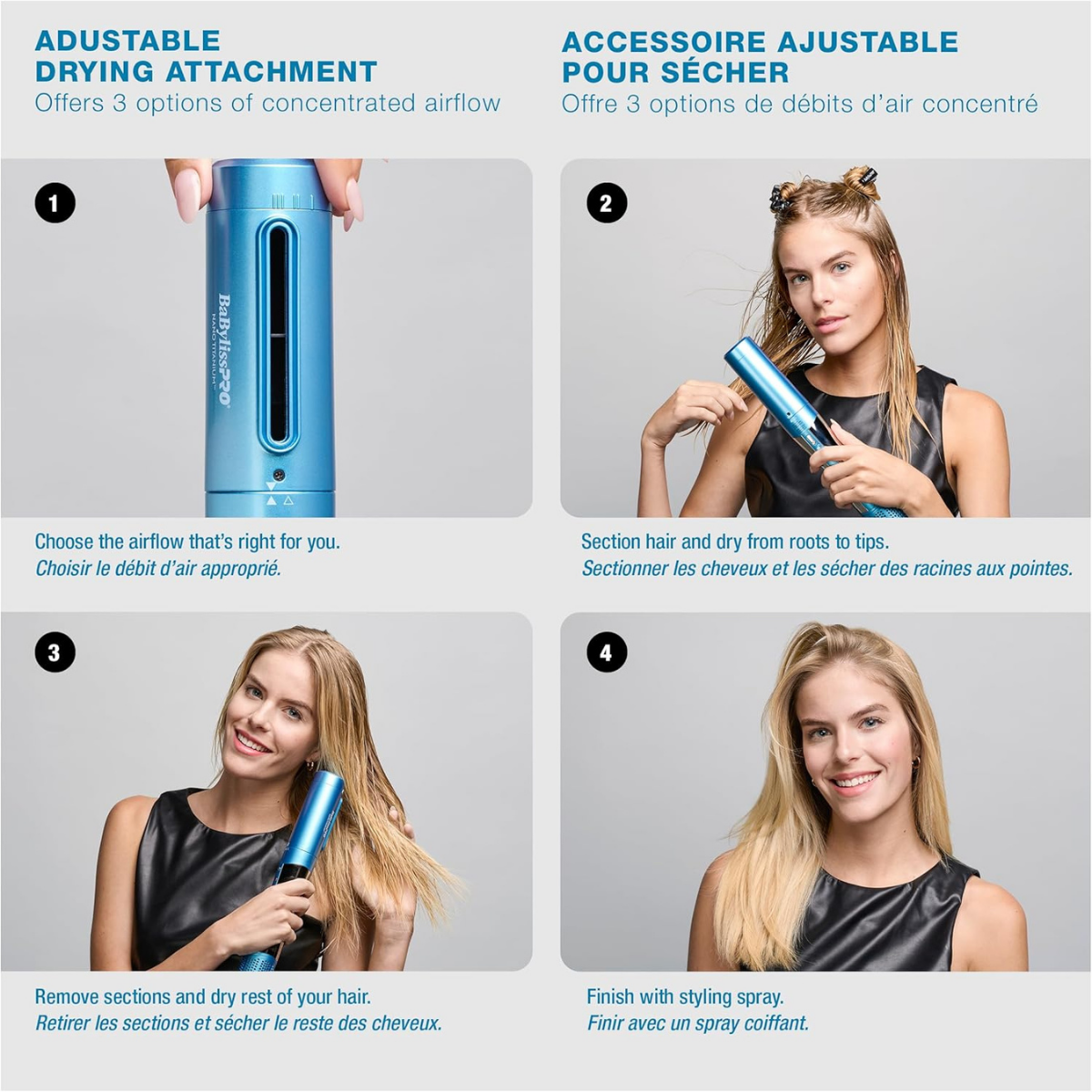 Adjustable Drying attachment: Customize your hair drying with three settings for concentrated airflow, minimizing damage and boosting shine.