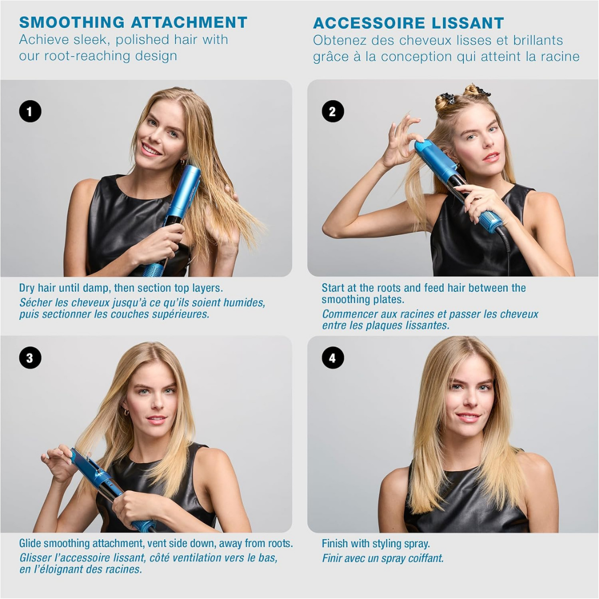 Smoothing attachment: Create sleek, polished style by gliding this attachment from roots to the ends, achieving a frizz-free look.