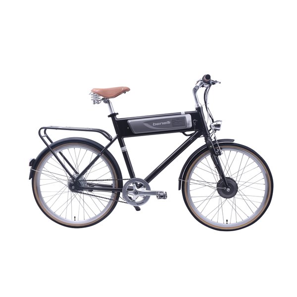The Benelli ‘green revolution’ is getting started. Conceived for the urban streets, the Benelli Men’s e-bike with a range up to seventy kilometre range. The Benelli e-bike has a sturdy 6061 aluminium frame and 26in alloy wheels. The lithium battery (36V, 10.4Ah) is very light, rechargeable in 4 to 6 hours and located in the frame’s cross rail.