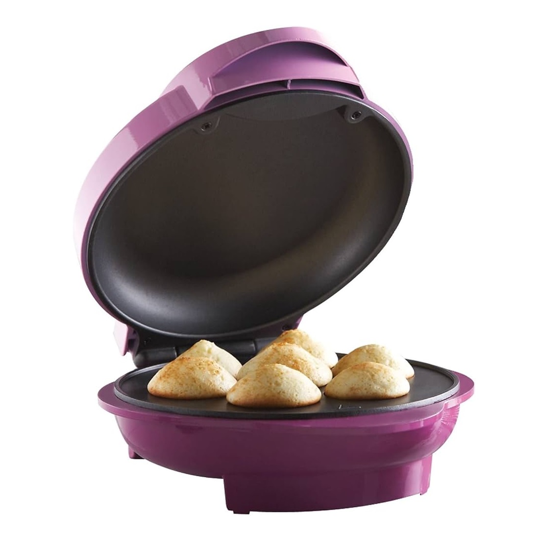 Bake 7 mini cupcakes in minutes with the 1000-watt Brentwood TS-252 Non-Stick Mini Cupcake Maker. Includes recipes for cupcakes, muffins, brownies, and more. Non-stick plates ensure easy release, while power and preheat lights show when it’s ready. The compact design features vertical feet and cable wrap for easy storage. For safety, it automatically shuts off if it overheats.