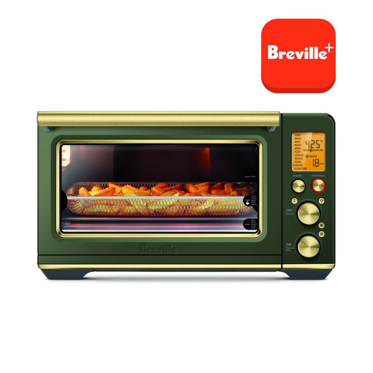 11 smart cooking functions including Air Fry. The Smart Oven™ Air Fryer powered by our Element iQ® system delivers maximum performance and versatility. Smart algorithms replicate the ideal cooking environment for air fry and 10 additional cooking techniques. Higher temperatures and super convection speeds up cooking time with great crispness. Uses up to 35% less power compared to a built-in oven*. Enjoy the confidence of cooking with Breville+. The full experience is free when you register your oven.