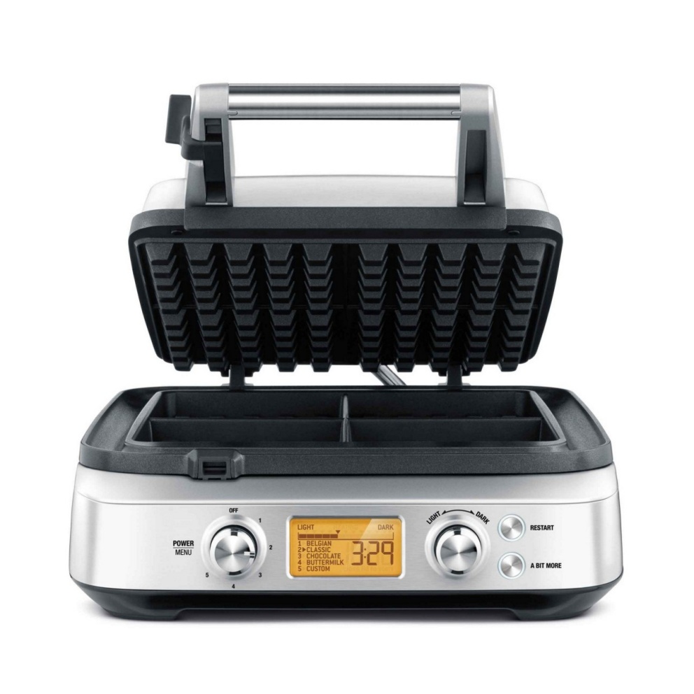 Automatically calculates the correct cooking time for whatever style of waffle & color you select. Once the lid is closed, the timer and progress indicator will automatically begin to count down. LCD changes to orange to indicate cooking cycle has commenced.