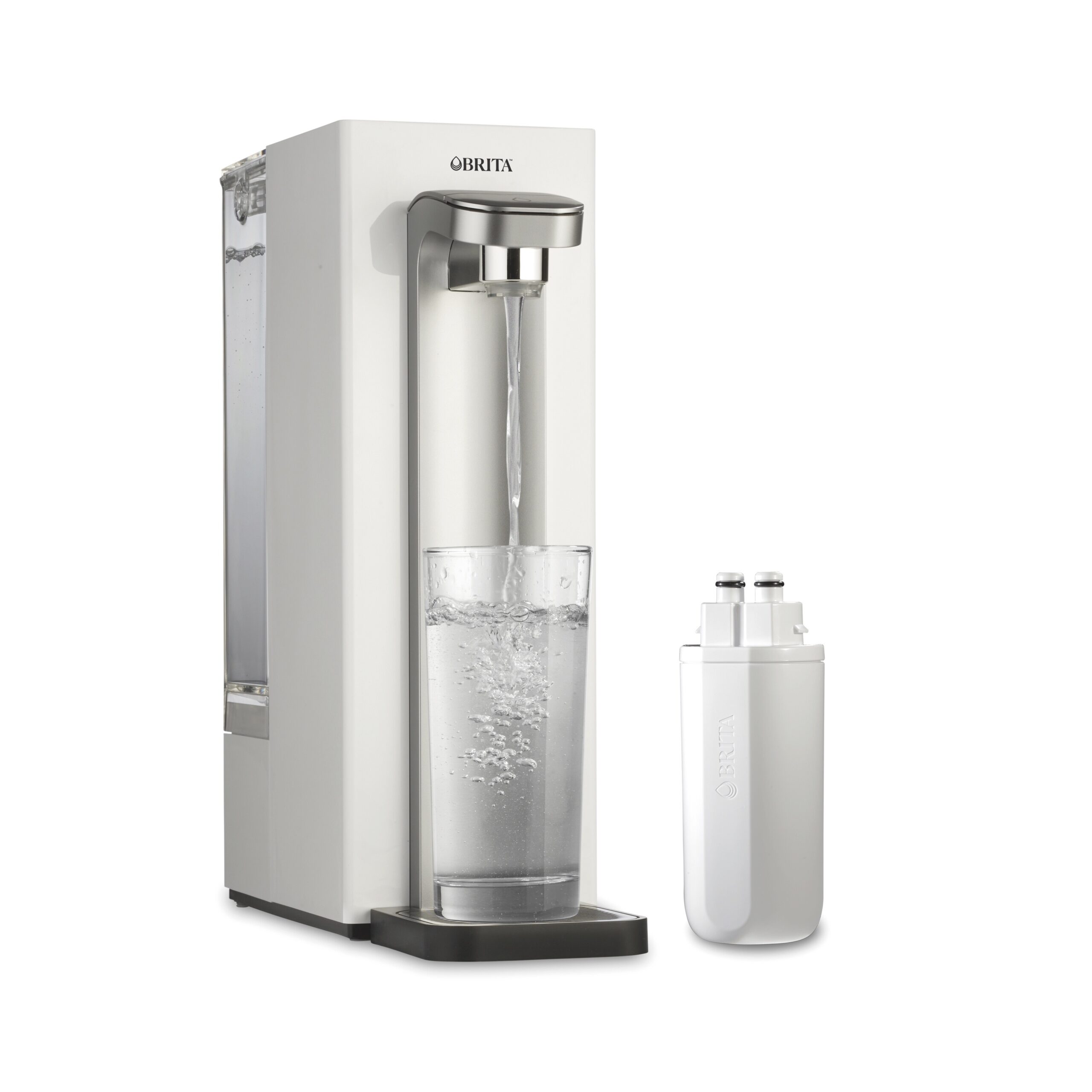 The Brita Hub Compact Countertop Water Filtration Device powered by Hamilton Beach is where superior hydration meets modern convenience. With the new Brita Hub filter, this countertop water filtration dispenser reduces 70+ contaminants including lead, chlorine, microplastics and more.* The whole family will enjoy healthier,*** great-tasting water. The Brita Hub Compact easily sets up in minutes with no tools. Simply insert the Brita Hub filter, fill the 9 cup (72 oz.) removable reservoir, plug in and flush the system twice to begin enjoying instant filtered water with no wait. The included Brita Hub filter lasts 6 months and filters 120 gallons of water.** Unlike traditional filtering pitchers, the electric Brita Hub machine uses pressurized filtration technology for advanced performance. Switching to the Brita Hub Compact replaces 1800 single-use plastic water bottles a year,** so cheers to you for joining the fight against plastic water bottle waste. The slim design is less than 5″ wide and takes up minimal space on the countertop. The modern, sleek design elevates the look of any kitchen.