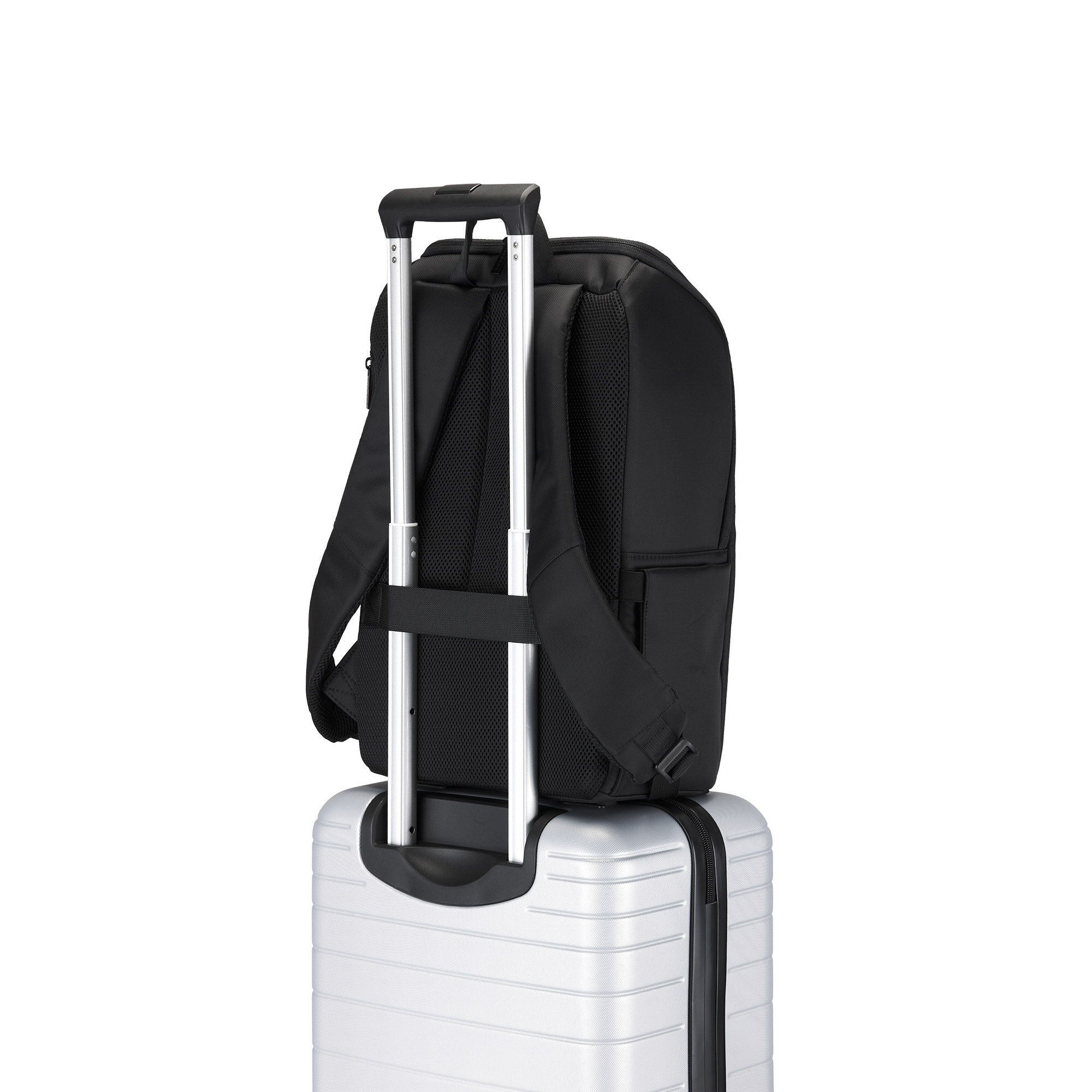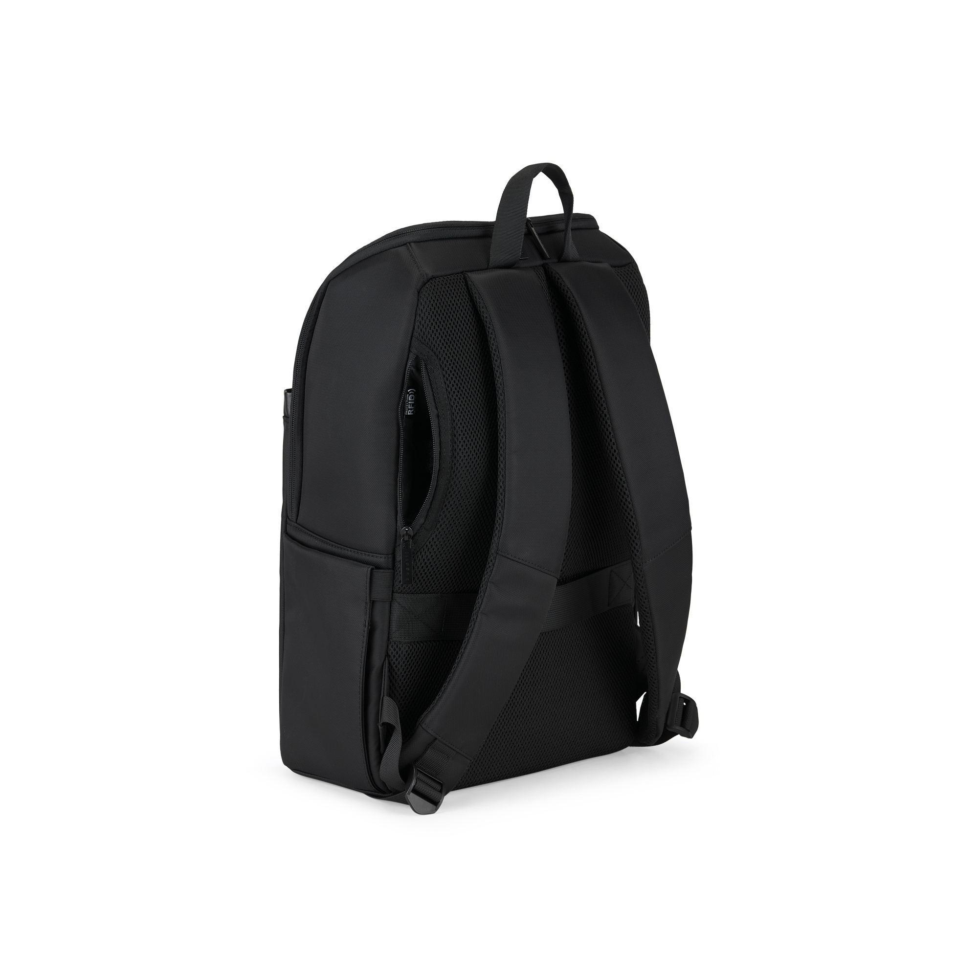 Discover a durable water-repellent nylon backpack with RFID protection, padded laptop compartment, multiple pockets, and comfortable padded straps for your essentials.