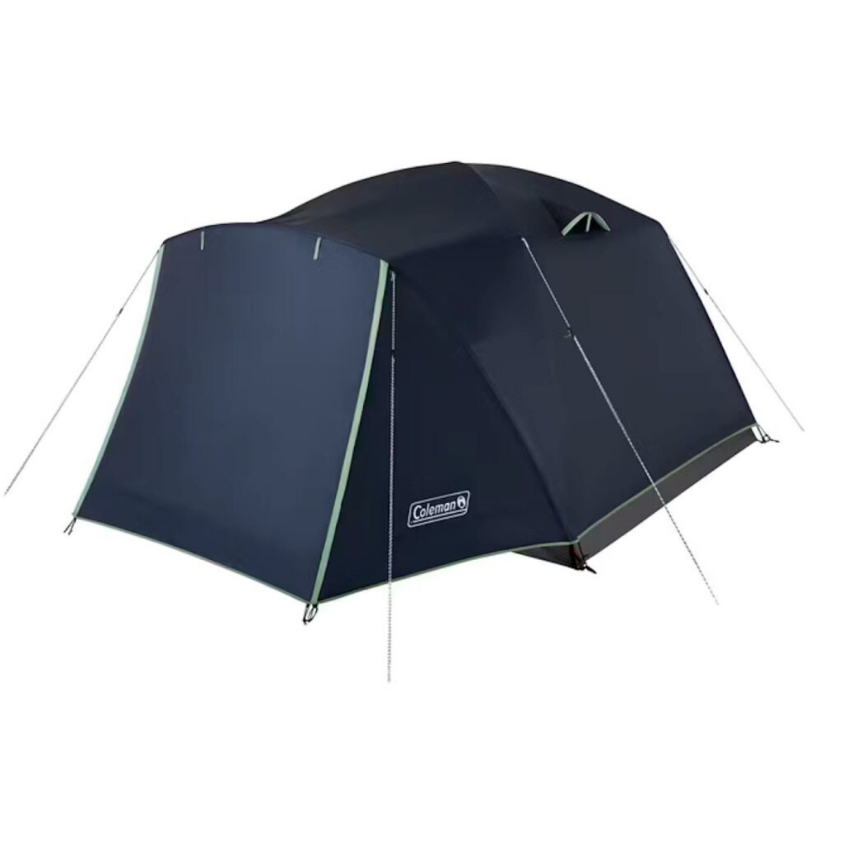 Sets up in under 5 minutes so you spend less time pitching the tent and more time relaxing at the campsite. The Coleman® Skydome™ Camping Tent with Full-Fly Vestibule offers extra weather protection and more storage space with the full-fly vestibule area. Go ahead and stretch out inside. The nearly vertical walls offer 20% more headroom than a traditional Coleman dome tent. Plus, a wide door design means you can move airbeds, sleeping bags, and other gear in and out with ease. Downpour in the forecast? This tent features the WeatherTec™ system, with welded corners and inverted seams that help keep you and your gear dry. Plus, the strong frame has been tested to withstand up to 35 mph winds. Roof vents and mesh back wall help with ventilation and airflow inside the tent for ultimate comfort. An E-port makes it easy to access an extension cord so you can bring electrical power inside your tent.