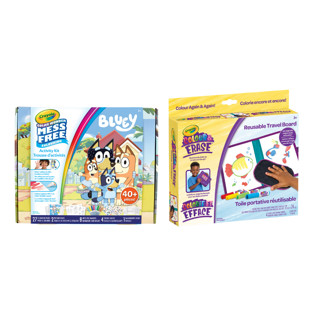Kids are ready to doodle, colour & draw anytime, anywhere with the Crayola Colour and Erase Travel Board! It features a travel carrying case with a dual-sided board, 4 washable markers, and a wipe cloth. Whether creating while traveling in a car, colouring at a park bench, or drawing in the classroom, these colouring supplies are simple to use and clean! When kids are ready to start a new drawing, they can easily wipe and clear their board with the included cloth. If colour goes off the board, these washable markers will clean from skin and clothing. It is perfect for kids, and makes a great holiday or birthday gift. Ideal for kids, ages 3 & up.