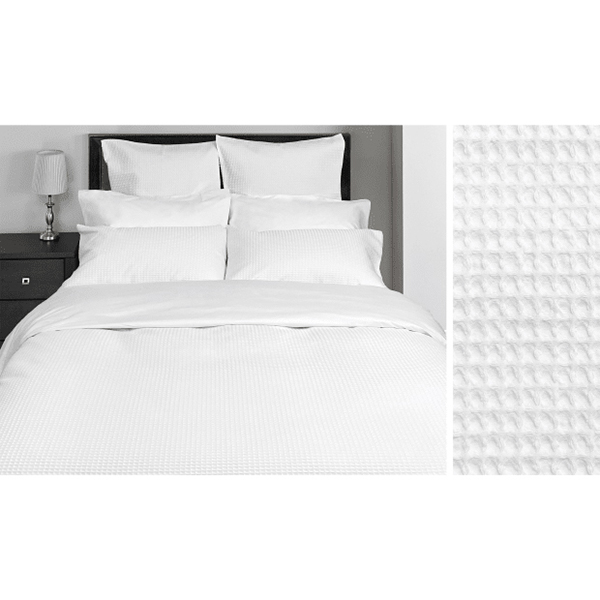 Cuddle Down 100% Waffle Textured Cotton Queen 3 Piece Duvet Cover Set - White