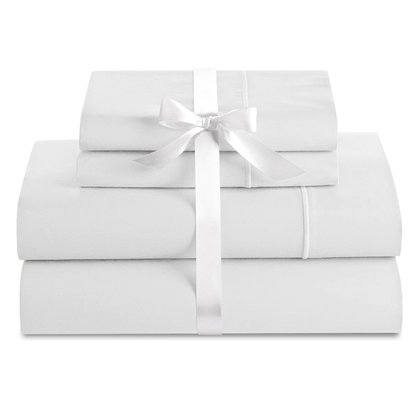 Cuddle Down Deluxe Impressions Collection Portuguese 100% Sateen Finish Cotton King 4 Piece Sheet Set - White