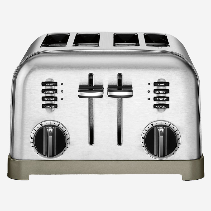 Our Metal Classic 4-Slice Toaster delivers innovative looks and spectacular performance. Two control panels each toast two items at a time, to any shade you want. That means you can toast thick sliced breads at the same time you’re doing bagels! Feature two 6-setting browning Dials and dual Bagel, Reheat and Defrost Controls with LED indicators.