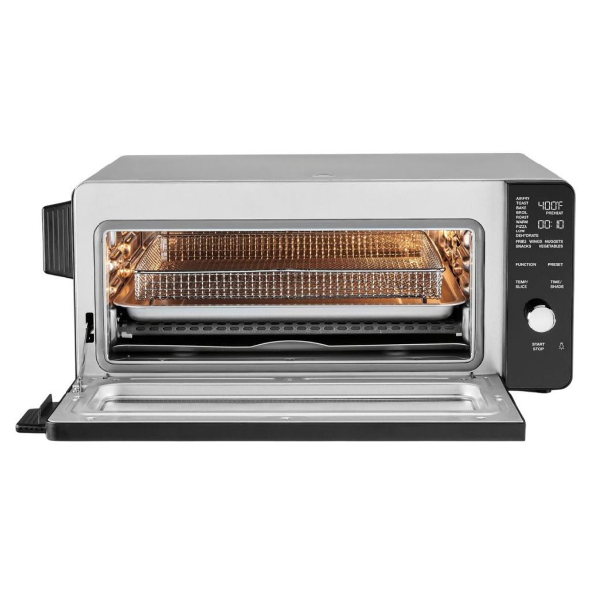 Small in footprint, bold in versatility — the 14-in-1 Space-Saving Air Fryer Toaster Oven is designed to do more with less. With 9 functions and 5 air fry presets, it delivers crisp results, family-sized meals, and everyday convenience from your countertop. The included 9″ x 13″ 2-in-1 pan with a removable divider lets you cook two meals at once, or go big for a single batch. Best of all, it stands upright for easy storage, freeing up space without sacrificing performance.