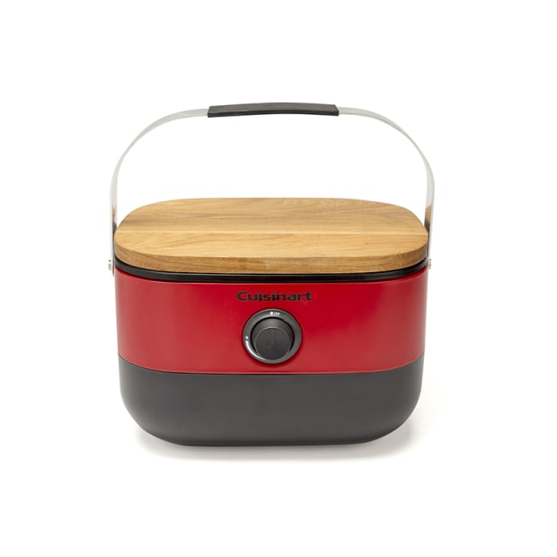Calling all adventure seekers! The Cuisinart® Venture Portable Gas Grill is a versatile and compact grilling system that makes the perfect outdoor companion. The stack’n’go design allows the grill to go virtually anywhere; from the beach to a picnic, or on a boat delivering the ultimate social grilling experience. Venture is your all-in-one portable gas grill that comes with a comfort grip handle for carrying. The wooden lid doubles as a chopping board; simple remove the cutting board from the top to prepare your meal or use it for cheese and crackers to enjoy while sipping a glass of wine. The grill grates are porcelain enameled cast iron, giving off more heat and holds heat longer than steel. The base includes a flip-out rack that will hold your propane tank upright and secure. When packing up, you will find clips next to the grill legs that safely store the propane hose. Simple, Complete, and Compact Portable Grilling System; Venture is the perfect travel accessory for picnics, tailgating, and camping!