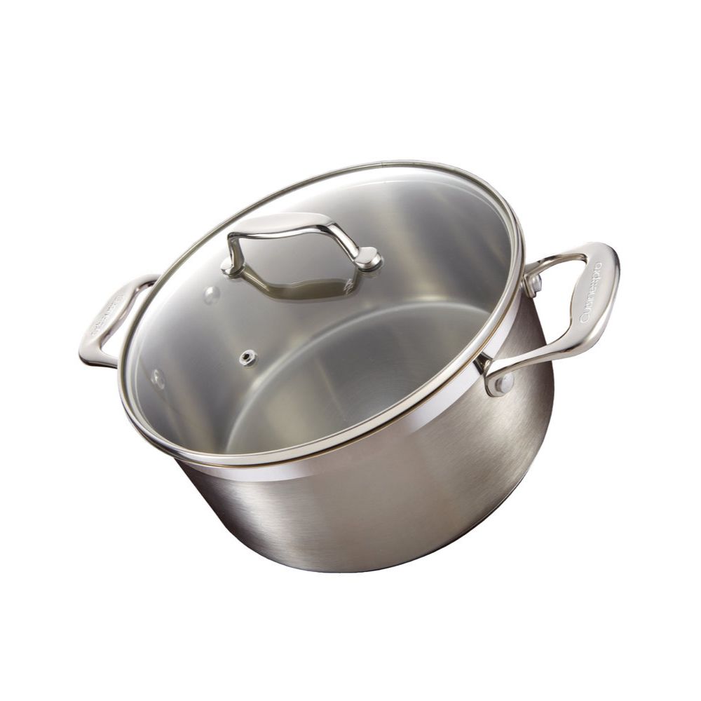 Enhance your kitchen with superior quality Cookware using the Cuisine::pro® iconiX® 24cm Casserole with Lid. Made from the highest grade 18/10 stainless steel and with a durable 5mm aluminum impact bonded base that works to distribute heat evenly, the Cuisine::pro® iconiX® casserole is a must-have Cookware piece for any kitchen. With an easy clean mirror finish interior and stay cool cast stainless steel riveted handles, the Cuisine::pro® iconiX® 24cm casserole will make cooking like a professional part of your everyday life. The Cuisine::pro® iconiX® range is suitable for all cook tops including induction and is dishwasher safe for your convenience.