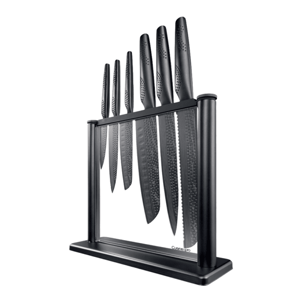 The Cuisine::pro® iD3® BLACK SAMURAI™ Gozen 7 Piece Knife Block is inspired by high performance knives used by Japanese Chefs. The matte black antibacterial coated knives represent the very best in craftsmanship and technology.