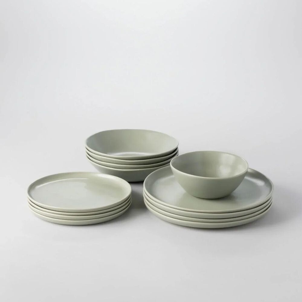 Whether you’re upgrading your collection or starting fresh, it’s best to begin with the basics—hand-finished stoneware essentials that are perfect for every meal. This set is versatile enough to handle everything from Tuesday night takeout to your next culinary masterpiece. Each piece in the set is organically shaped and unique, hand-finished in Portugal. The set includes four each of dinner plates, salad plates, pasta bowls, and breakfast bowls. The stoneware features natural flecks that emerge during firing and may be visible through lighter glazes, resulting in slight variations.
