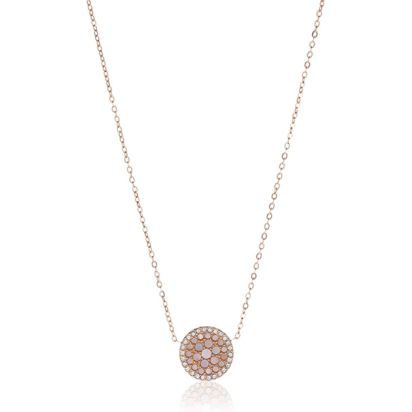 This 40.6 cm + 5.1 cm necklace features a mother-of-pearl and glitz disc pendant, rose-gold-tone steel and a lobster clasp closure.