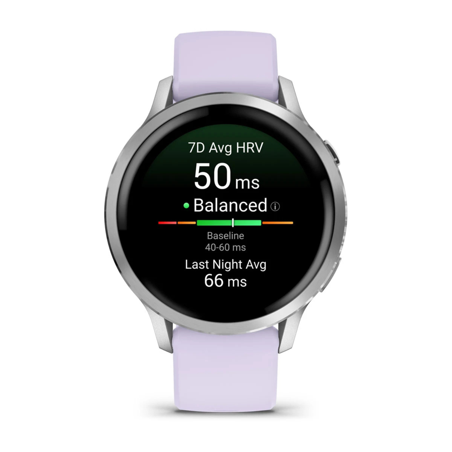 Garmin® Venu® 4 41mm Smartwatch-Silver with Periwinkle Silicone Band
