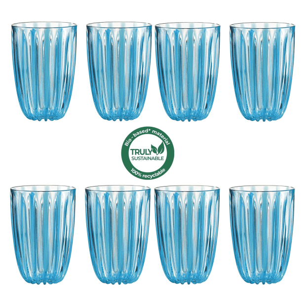 Dolce Vita means style, innovation and environmental sustainability from world famous Guzzini of Italy. Picture yourself dining on the Amalfi Coast over looking the Mediterranean Sea with a gourmet menu and fine Dolce Vita tableware designed by Italy’s best.Guzzini. Dolce Vita Tall Tumblers are made with 60% bio-based plastic. Dolce Vita is a collection of unique, exquisite products that celebrate the natural elegance of the world famous Italian lifestyle. Dolce Vita is made with bio-based plastic, a renewable material made from plant waste and biomass residues making it renewable, non-fossil and 100% recyclable.