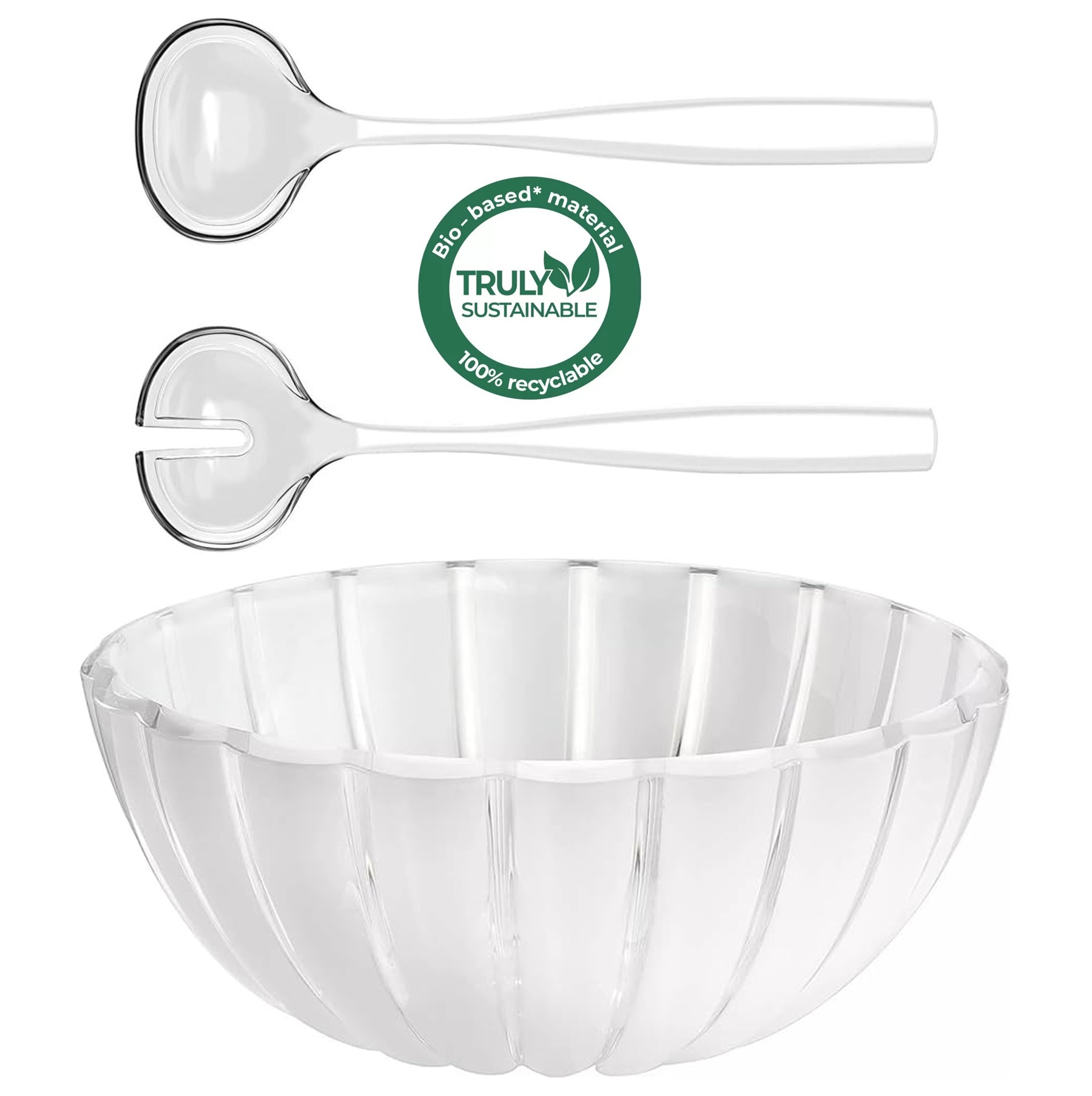 Guzzini Dolcevita Fine Acrylic 3 Piece Serving Bowl & Servers Set - White/Clear