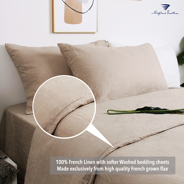 100% French Linen with softer Washed bedding sheets is made exclusively from high quality French grown flax, naturally grown and processed without chemicals or additives, harvested in an environmentally friendly manner.