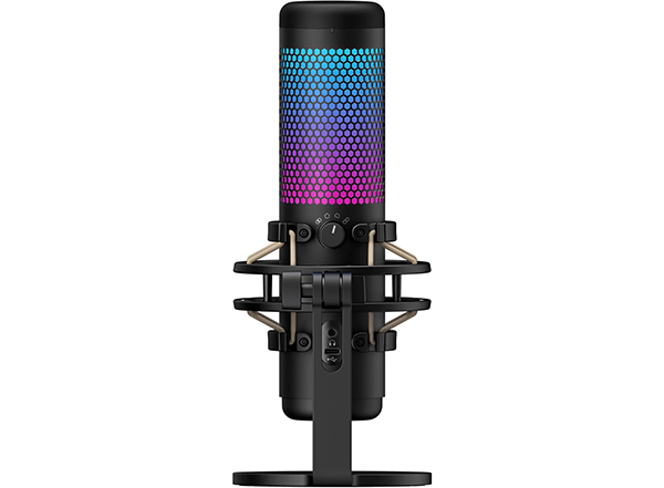 The HyperX QuadCast™ S is a USB condenser microphone that both sounds great and looks great. The supremely stunning RGB lighting and dynamic effects will add style and flair to any stream or setup and is customizable via HyperX NGENUITY software. The QuadCast S is an all-inclusive mic, featuring an anti-vibration shock mount to help quiet the rumbles of daily life and a built-in pop filter to muffle plosive sounds. Instantly know your mic status with the LED indicator, and simply tap-to-mute to avoid awkward broadcasting accidents. QuadCast S is certified by Discord and TeamSpeak™ so you can ensure that your microphone is broadcasting loud and clear for all your followers and listeners, and you can also monitor your mic in real time using the convenient headphone jack on the back of the mic. It’s multi-platform compatible, so you can deliver quality sound output whether you’re connecting to a PC, PS5™, PS4™, or Mac®.
