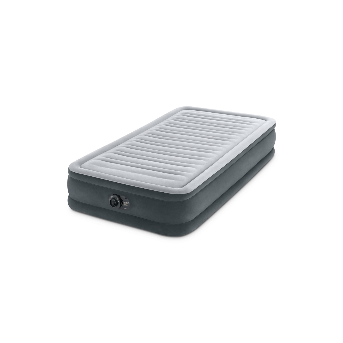 Introducing the Intex 13in Twin Comfort-Plush Airbed, where luxury meets convenience! . Your guests will feel like they’re sleeping on a cloud with the plush dual-layer comfort top that promises a smooth and restful night’s sleep. Crafted with Fiber-Tech construction, this airbed boasts superior stability and durability, so it’s ready for any adventure. The clever edge and bottom ring design ensures it stays steady, making it a breeze to get in and out of bed. Inflating is a snap with the powerful internal pump, just 2 minutes and you’re ready to go! . Plus, it comes with a handy carry bag for easy storage and transport. With a max weight limit of 300 lbs, this airbed is the perfect blend of comfort and practicality for every sleepover!.