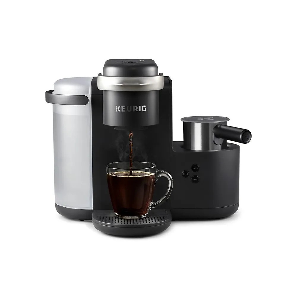 Enjoy the rich, full-flavored coffee you love or delicious coffeehouse beverages from the new Keurig K-Café single serve coffee, latte, and cappuccino maker. Whether brewing coffee, or making lattes, and cappuccinos, the K-Café coffee maker works with any K-Cup pod so the options are endless. Use the coffee SHOT to brew a concentrated shot of coffee and froth your choice of fresh milk to create a creamy latte or frothy cappuccino. Enjoy your latte or cappuccino hot or use the COLD setting to froth cold milk for a wonderfully refreshing iced latte or cappuccino. Brew 177, 237, 296, and 355 ml (6, 8, 10, or 12 oz) of your favourite coffee, tea, or cocoa – select Strong Brew when you want a bolder cup of coffee. The dishwasher safe frother makes clean up a breeze – enjoying delicious specialty beverages at home has never been so easy. Just brew, froth, enjoy!