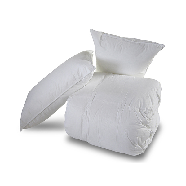 2 pillows – 233 TC Down Proof Cotton. Knife edge construction. White piping with Double stitching . 100 % Dacron Comforel. Hypo Allergenic. Washable