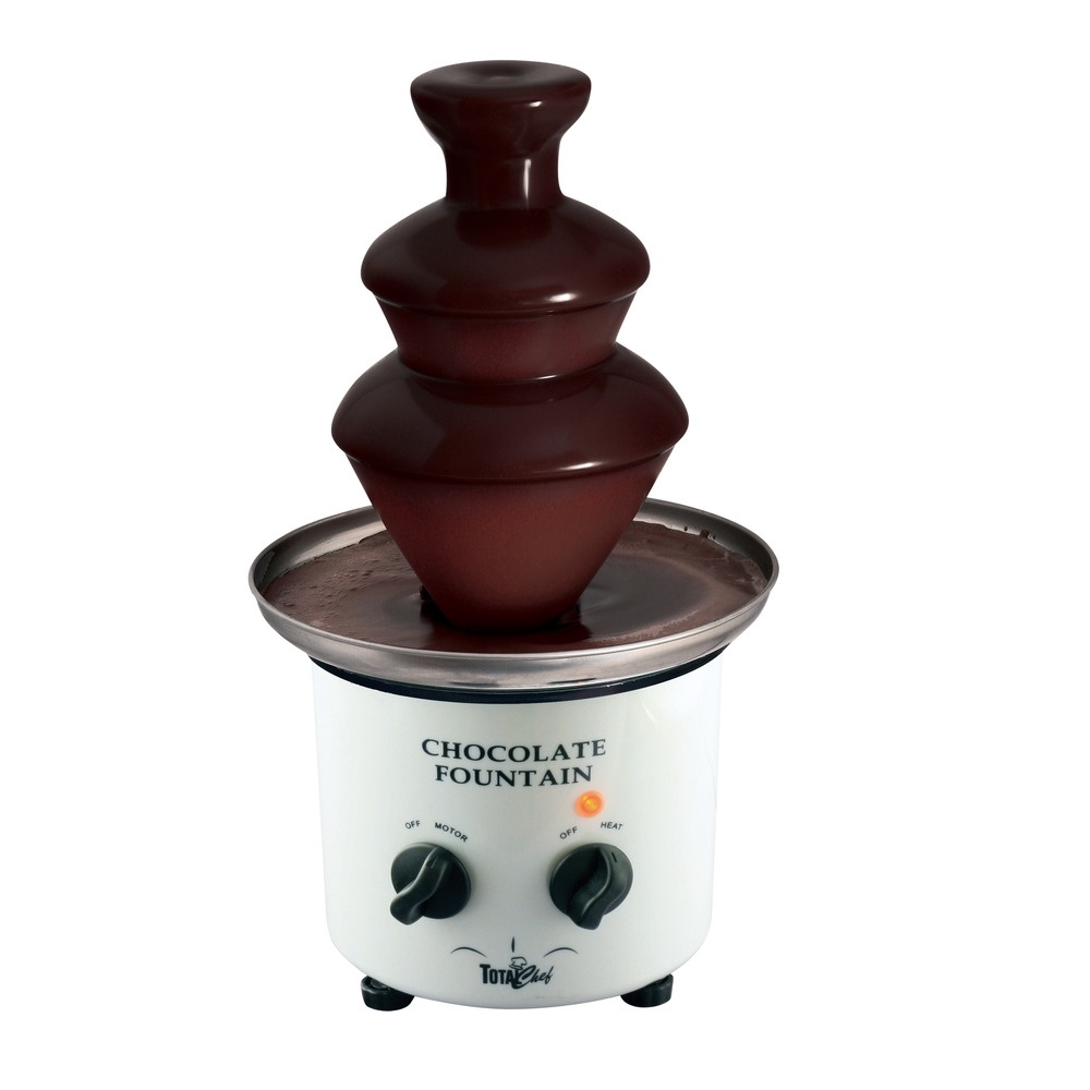 Chocolate Fountain an innovative product that enhances any buffet – wedding reception or special event. It is perfect for fruit-marshmallows-cookies-pretzels or anything that you can hold under the falling curtain of chocolate. Chocolate Fountain is made of stainless steel and durable heat resistant plastic. It holds about 2 lbs of chocolate. It has a thermostat and safety fuse for safe operation. This fountain is durable and easy to use. Product Features: Holds about 2 lbs of chocolate. Made of stainless steel and durable heat resistant plastic Has a thermostat and safety fuse. Easy to use.
