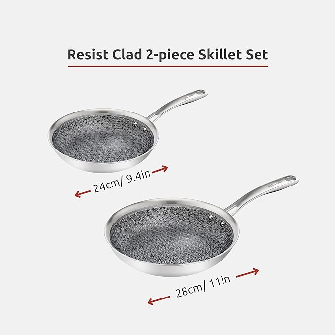 The 3-Ply Resist-Clad range from Lagostina proves not all stainless steel is created equal. Prepare mouth-watering meals with ease and enjoy the high heat searing and quick clean-up with the skillets. Lagostina’s 6-layer Lago-Mesh technology provides even-heat transfer to get that perfect brown sear every time. Ideal for healthy eating, these skillets let you cook with little to no oil. It is oven-safe up to 350°F/175°C. The Resist-Clad range is made for hassle-free cooking: the durable materials are compatible with any heat source including induction and the intricately engraved surface makes the elegant pan scratch-resistant. For a lifetime of easy cleaning and perfect results.