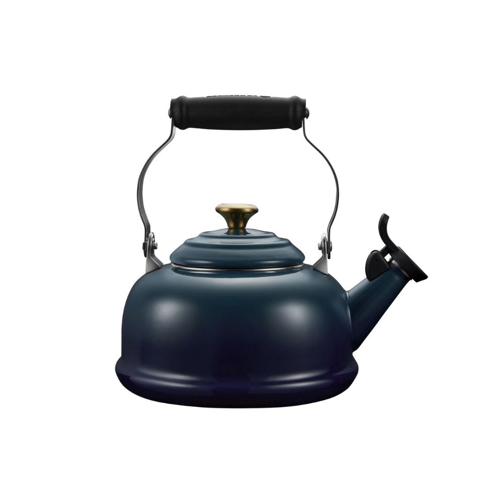 At home in both traditional and contemporary kitchens, this fresh take on a classic design maintains the styling of an antique with elements of modern technology, like a unique bracketed handle for added control and safety when pouring hot water. Suitable for all heat sources, including induction, Le Creuset kettles are crafted from premium carbon steel and finished with a vibrant, chip-resistant porcelain enamel. Useful for preparing French press coffee, oatmeal and much more in addition to tea, Le Creuset kettles make excellent gifts and are a simple yet effective way to add a touch of colour to the kitchen. Features Enamel on steel design, Electric, gas, halogen, and induction heat source safe design.
