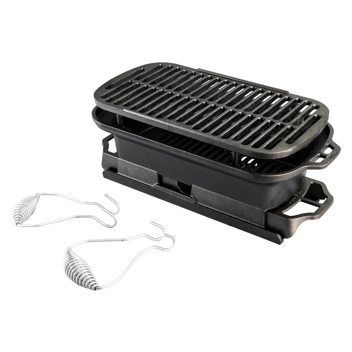Having the gang over for a backyard BBQ, or gearing up for a tailgate before the game? This rugged, hibachi-style grill can handle the heat. The four-piece design, with a removable grill grate, makes for hassle-free assembly and cleanup, so you can focus on the fun. Dual air vents let you control the heat as you cook. Crafted in America with iron and oil, Lodge’s naturally seasoned cooking surface is ready to help you make memorable moments. Comes with a set of steel Hook & Carry Handles for a secure, safe grip when lifting or maneuvering the grill.