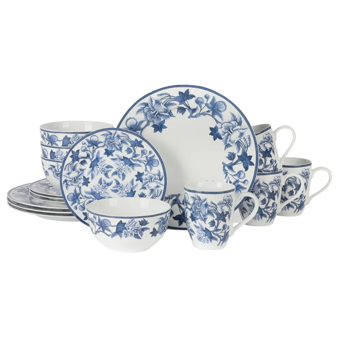 Martha Stewart Goodale 16-Piece Vintage Blue Fine Ceramic Dinnerware Set
