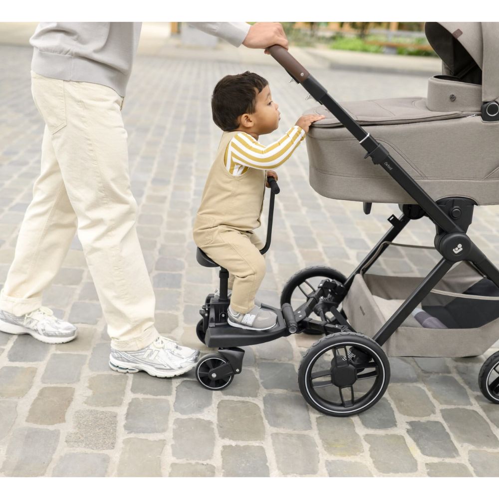 Make heading out with your two little ones a walk in the park with the Maxi-Cosi Hop-on Board. Easily attach it to your Maxi-Cosi stroller to let your toddler join the fun while their younger sibling relaxes in the stroller. Whether they choose to stand and explore as your little co-pilot or take a seat to rest their legs, the Hop-on Board offers versatility and comfort for every adventure. With its easy installation and secure design, it’s the perfect addition to your stroller for smooth and stylish rides