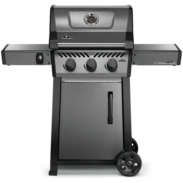 The Freestyle 365 Propane Gas Barbecue is a compact grill with premium features and unbeatable value. Ignited by the instant JETFIRE ignition system that lights the main burners with a jet of flame easily, every time. Get the perfect sear over the cast iron porcelainized enamel cooking grids. Three stainless steel burners provide heat that can be easily controlled by ergonomic knobs and monitored by the onboard temperature gauge. The rugged wheels allow this barbecue to go where the action is, while the easy-to-fold side shelves, featuring tool hangers and a bottle opener, make sure that the Freestyle meets your lifestyle and space.