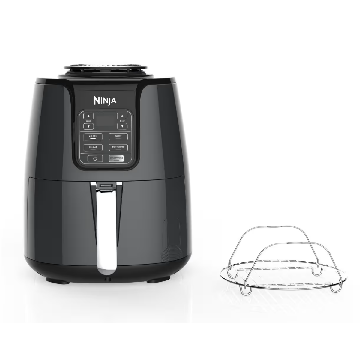 Time is precious, even more so when you’ve got hungry mouths to feed. Why wait for your oven to preheat and then slowly cook that highly anticipated meal when there’s a quicker way to put food on the table for your whole family? Meet the Ninja Air Fryer, a fast and easy way to cook your favorite foods. It ensures even circulation of hot air around your food for quick, crispy, and golden finishes, every time. The secret is the smart processor that delivers a wide temperature range while powering the fan that automatically adjusts speeds based on your cooking function, allowing you to cook and crisp your favorite foods, like 2 lbs. of French fries, using little to no oil in a family-sized 4-quart ceramic-coated basket. The wide temperature range gives you the ability to roast, bake, air fry, reheat, or dehydrate foods, making it your new go-to appliance for any meal or snack. With the Ninja Air Fryer on your countertop, you can pull crispy meals out of thin air.