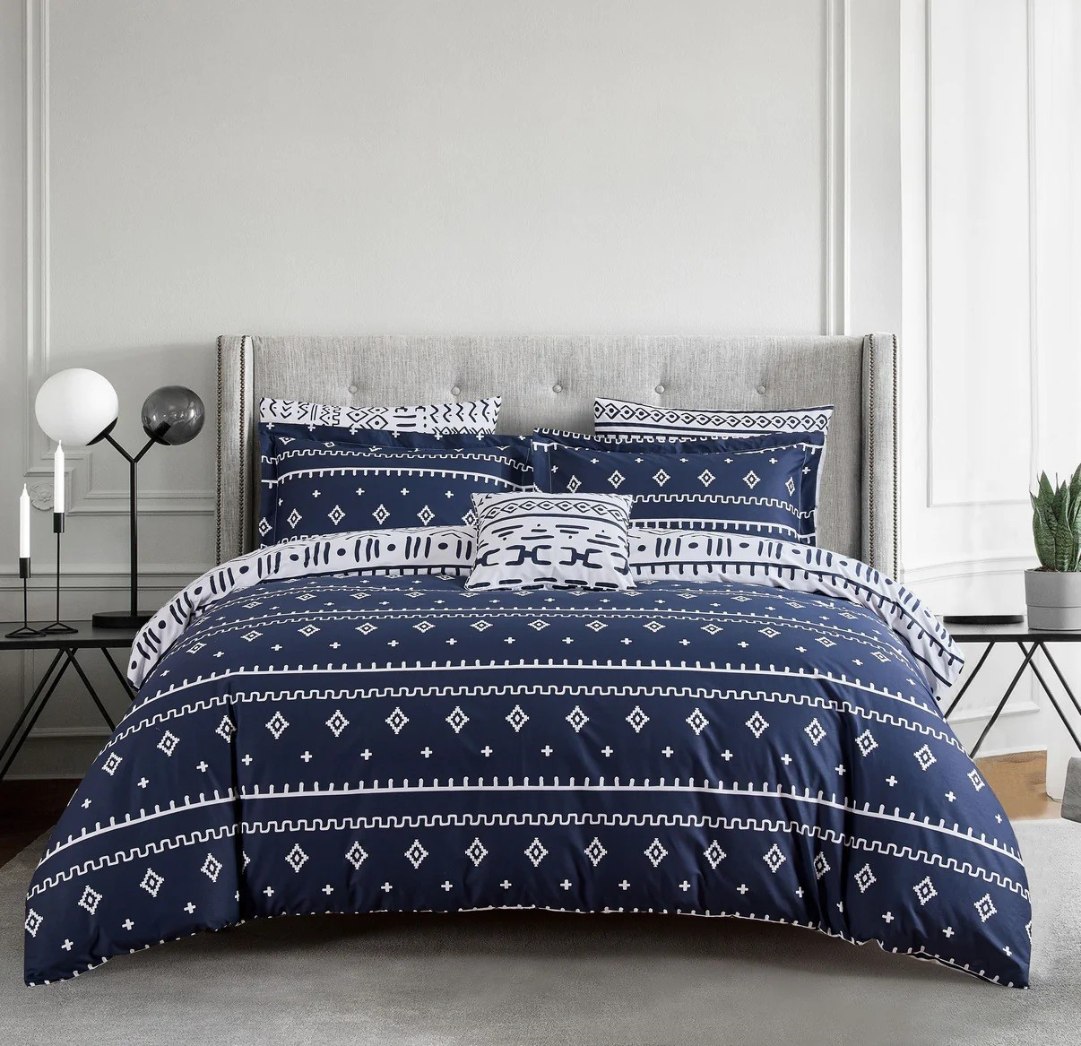 Mixing current trends with beautiful style, this printed duvet cover set will create a sophisticated yet relaxed atmosphere in any bedroom