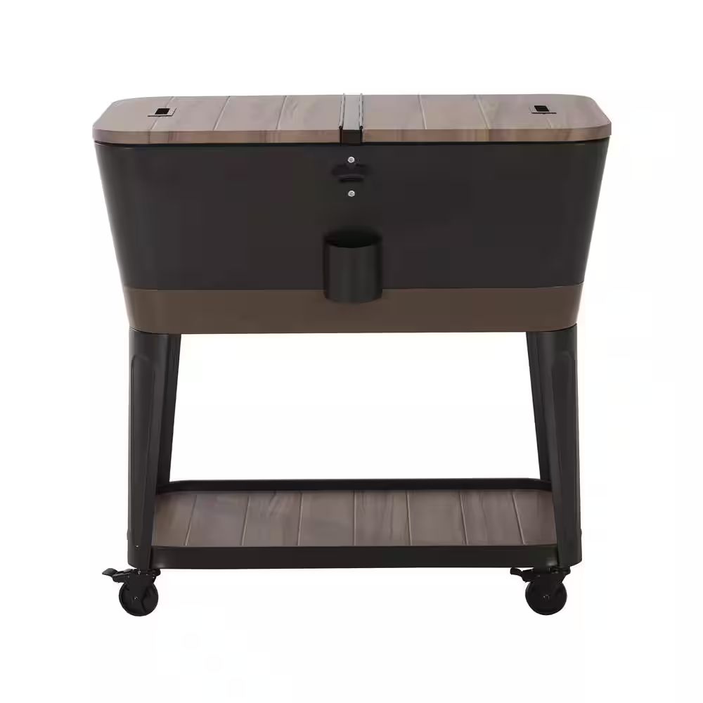 The Permasteel 80-Quart Tapered Wood Grain and Brown Trim Patio Cooler with Shelf gives you plenty of storage for beverages, snacks, and more, while its insulation and durable construction keep your items cold and safe from the elements. The woodgrain style finish adds a modern touch to any outdoor decor, making it perfect for any get-together or outdoor celebration. The cooler hosts a dual lid, a handy bottle opener and a super useful bottom shelf that provides additional space for bar accessories, towels, cups, and more. Easily roll the Patio Cooler around on its convenient wheels so that you can move it wherever your gathering is taking place.