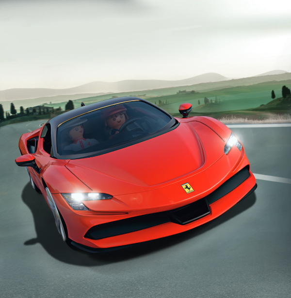 Introducing a new and exciting supercar into the PLAYMOBIL car fleet: the Ferrari SF90 Stradale. Feel the inimitable Ferrari vehicle look come to life in this unique PLAYMOBIL model. The Ferrari SF90 Stradale from PLAYMOBIL fascinates with sleek, aerodynamic lines, the iconic bright red color typical of Ferrari sports cars, authentic interior design, and realistic light functions. Remove the roof to reveal the detailed interior that includes an illuminated dashboard, steering wheel with Ferrari logo, and enough space to seat two PLAYMOBIL figures. Inside the trunk you will find the V8 engine. A fantastic replica of the Italian series production supercar, ideal for all car lovers to display, admire, or play with.