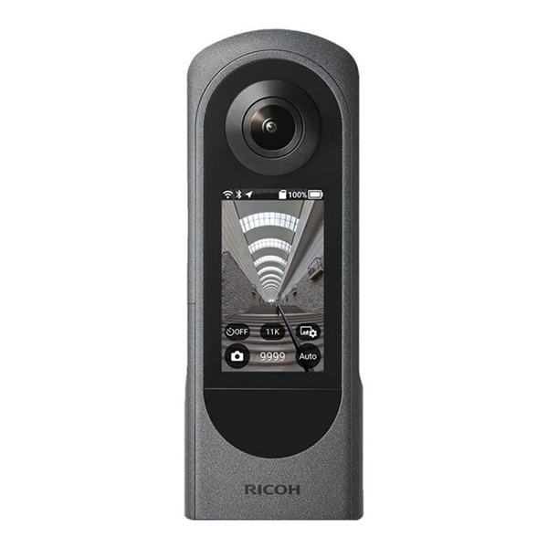 Designed in pursuit of enhanced usability and outstanding quality, this advanced model joins RICOH THETA’s series of 360-degree cameras that shoot immersive still images and videos in a single shot and is equipped with many firsts for THETA series: a large touch screen display, interchangeable battery, and external memory card.