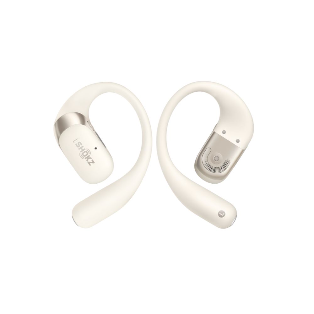 Shokz OpenFit 2 Beige Bluetooth Headset Noise Cancelling Mic Around Ear Air Conduction – OpenBass – Water Resistant IP55 – 48Hr Battery Life.