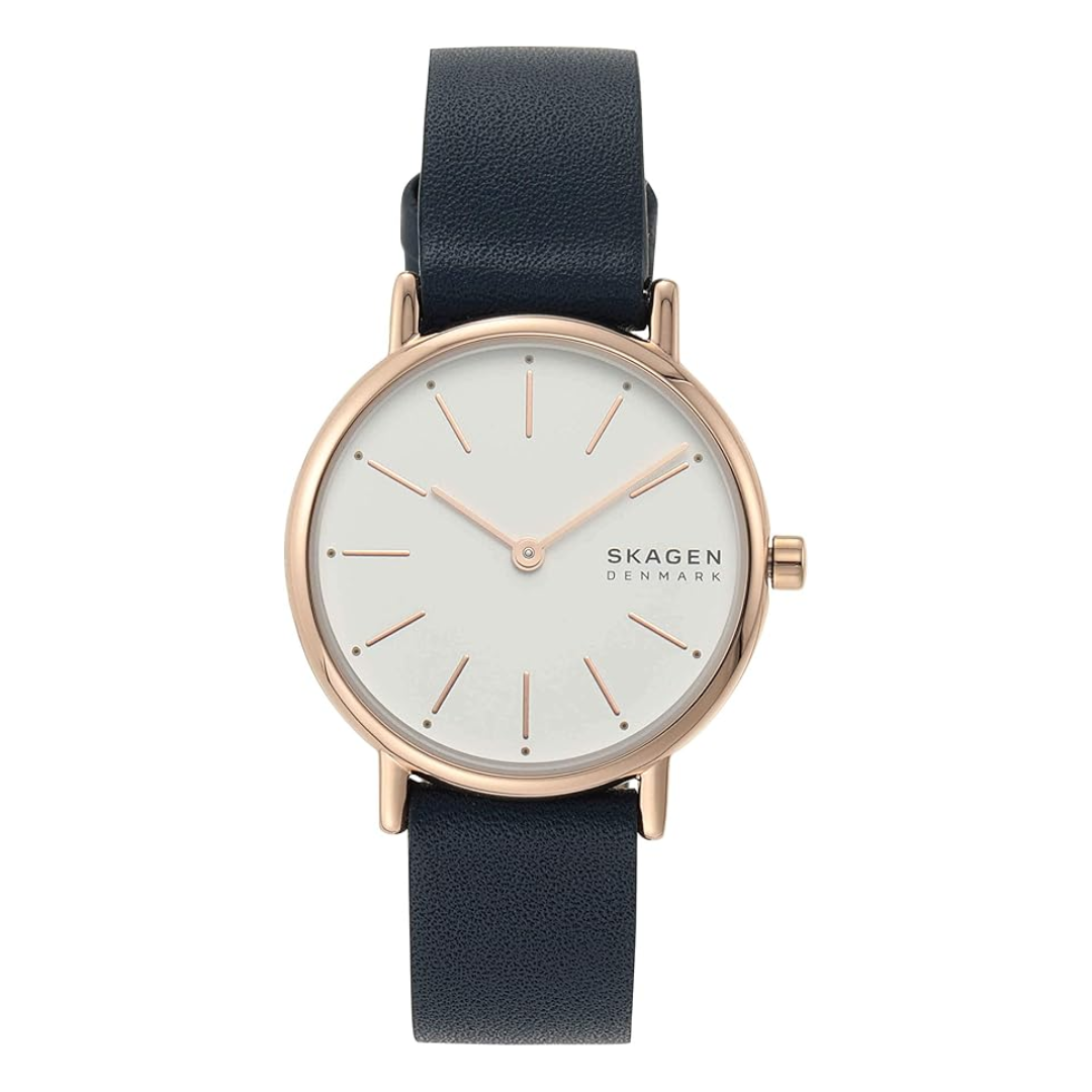 This 30mm Signatur Lille features a white matte dial, two-hand movement and blue leather strap.