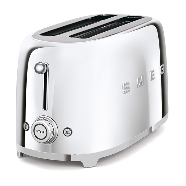 Smeg long slot Toaster (fits 4 slices). Features include Self-centring racks, Automatic slice pop up and Removable stainless steel crumb tray,