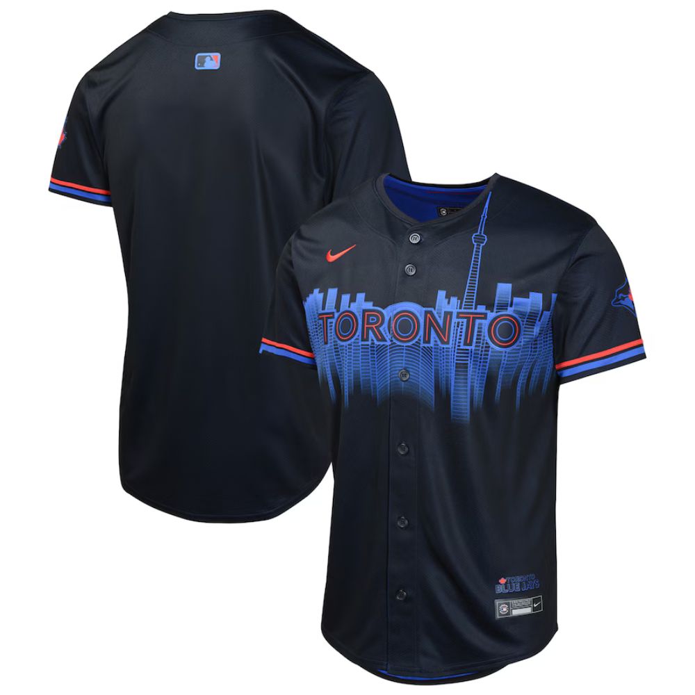 Have your kiddo show everyone how devoted they are to their hometown team by grabbing this Toronto Blue Jays 2024 City Connect Limited Jersey from Nike. The design is meant to symbolize the city of Toronto with the colors and graphics representing everything they love about the Six. Made from quality materials, this gear provides your young fan with continuous Toronto Blue Jays style with every wear.