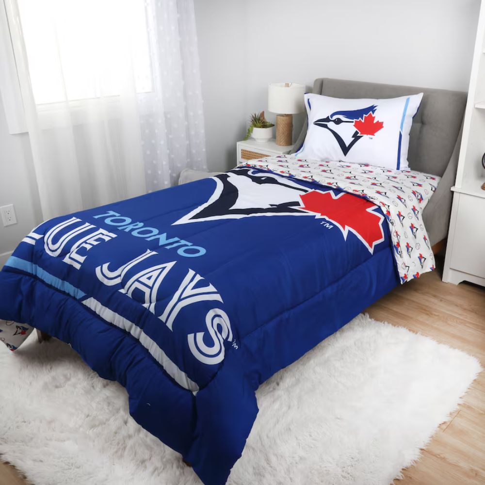 Inspire dreams of Toronto Blue Jays victories by grabbing this Twin Bedding Set. This bedding set is made from soft fabrics to ensure that you get a good night’s sleep. The set features sublimated Toronto Blue Jays graphics to make your bedroom the ultimate fan cave.