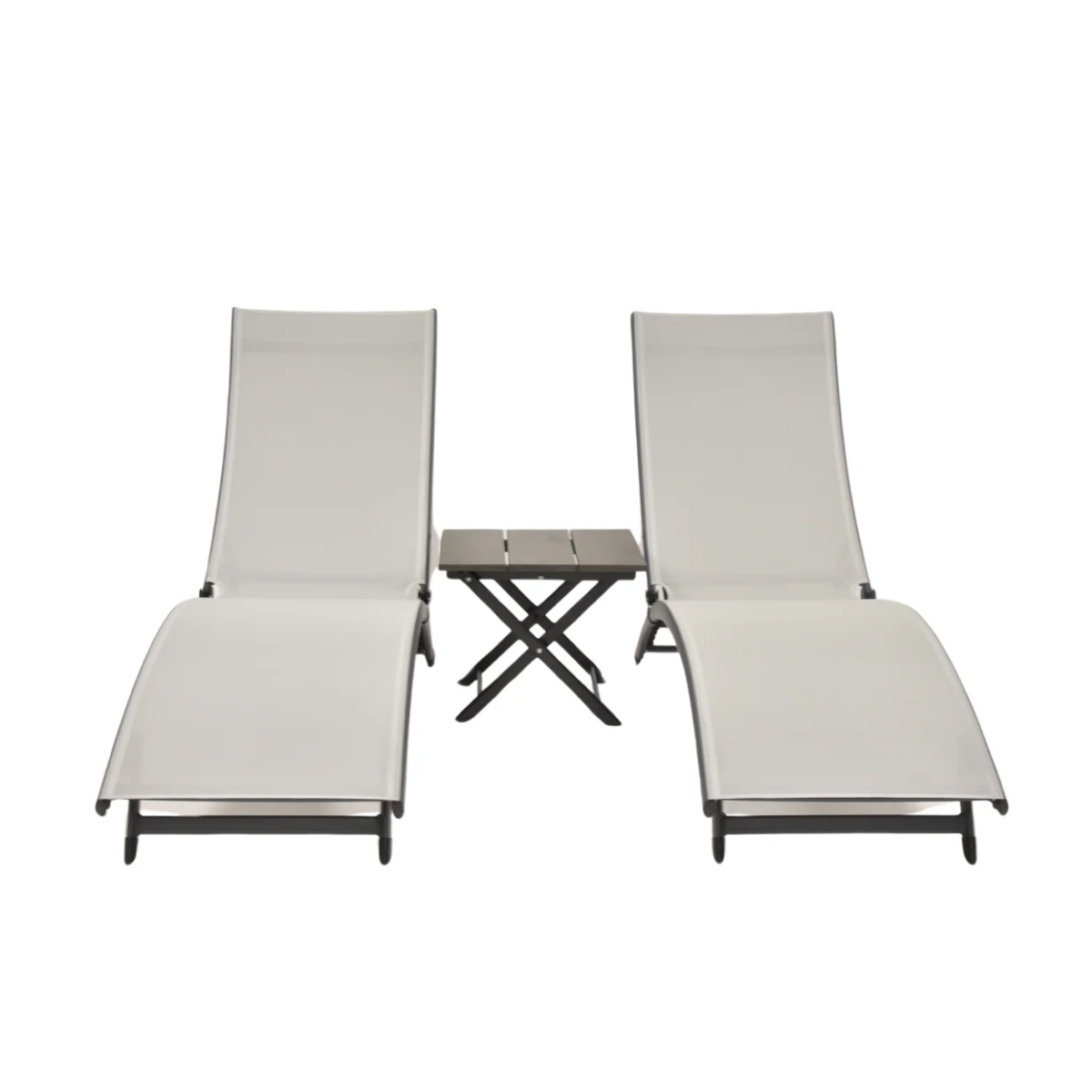 Elevate your outdoor living with Vivere’s Coral Springs Aluminum Lounger Set. This 3-piece ensemble includes two sleek loungers and a foldable table, offering the perfect balance of comfort and functionality. Crafted with a durable aluminum frame and premium Phifertex sling fabric, this set ensures superior support and weather resistance. Fully assembled for immediate use and stackable for easy storage, the Coral Springs Set is perfect for patios, poolsides, or gardens, creating a stylish outdoor retreat.