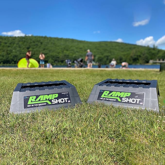 RampShot – Get in the Groove! This toss game is great for tournaments or team play. With all parts included for a 4-player game; set up and game play is a breeze. To play this incredibly competitive game, space the ramps out 15 ft/4.5m or 5 paces apart and determine a starting team. Played in teams of 2 vs. 2, players take turns shooting, catching and stealing balls each round, working with their team to be the first to score exactly 15 points.